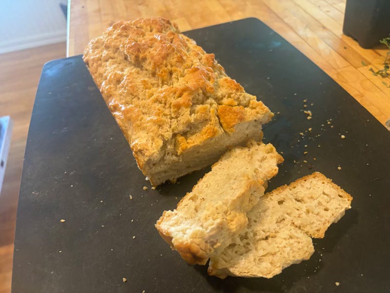 The Heroes' Feast beer bread (from Fortune's Wheel, "an upscale canteen in Sigil's aristocratic Lady's Ward" [1]) gets the job done. It's beer bread! It's identical to every other beer bread I've made or tasted, "as middling as the common brew," to quote the recipe's flavor text describing other, supposedly lesser beer breads.