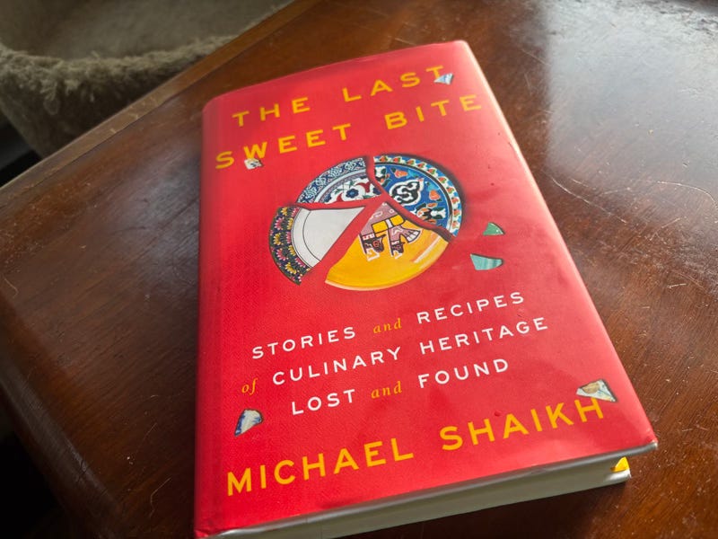 And now I'll think about THE LAST SWEET BITE, a new cookbook by human rights investigator Michael Shaikh. More than any book I've read to date, The Last Sweet Bite looks at how food and culture are deeply intertwined, and how occupying forces attempt to pull them apart.
