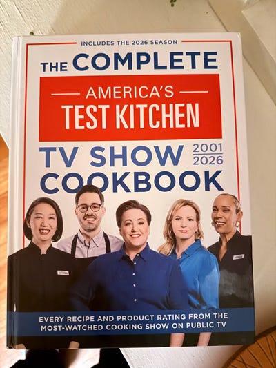 So, this week, another exploration of the ATK empire, namely the AMERICA’S TEST KITCHEN TV SHOW COOKBOOK 2001-2026. And through the magic of “other people doing a lot of the work,” we’ve got notes on no fewer than seven different recipes.